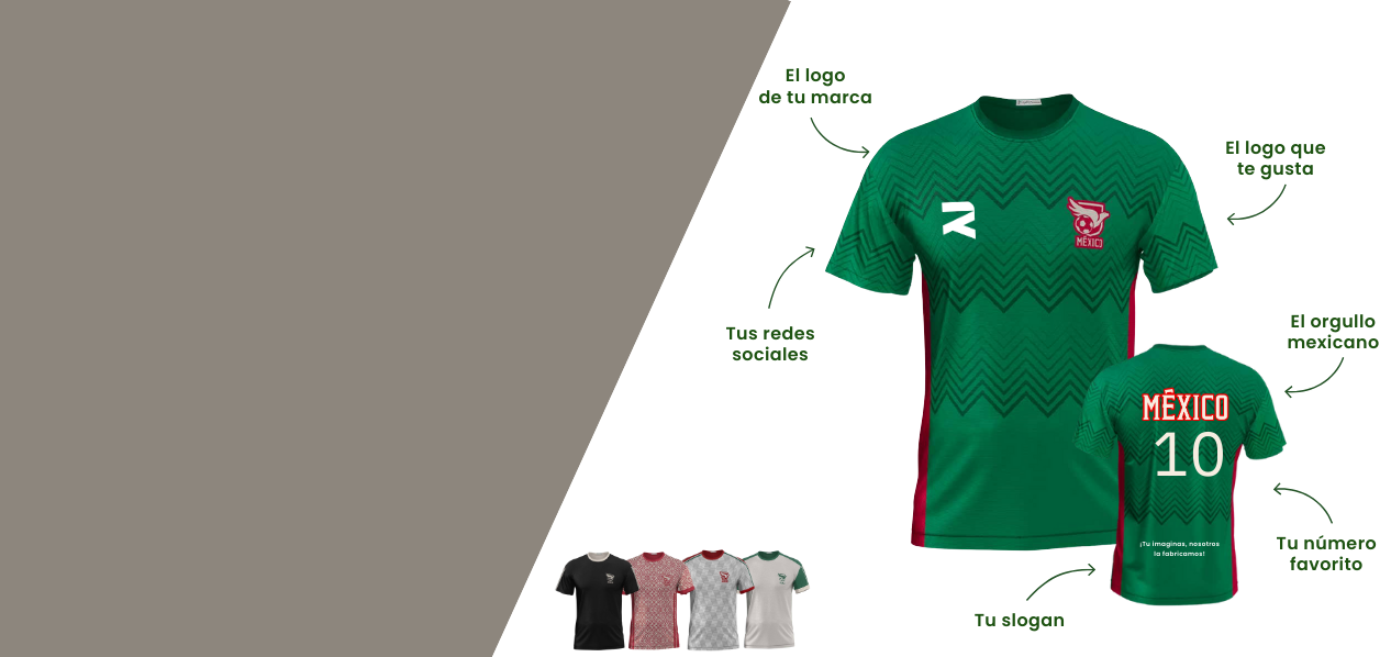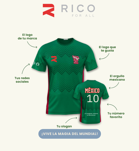 Celebra el orgullo mexicano llevando tu marca al siguiente nivel. Personaliza playeras con tu logo, redes sociales, slogan y número favorito, creando un diseño único que conecta con la pasión, la identidad y el amor por México.